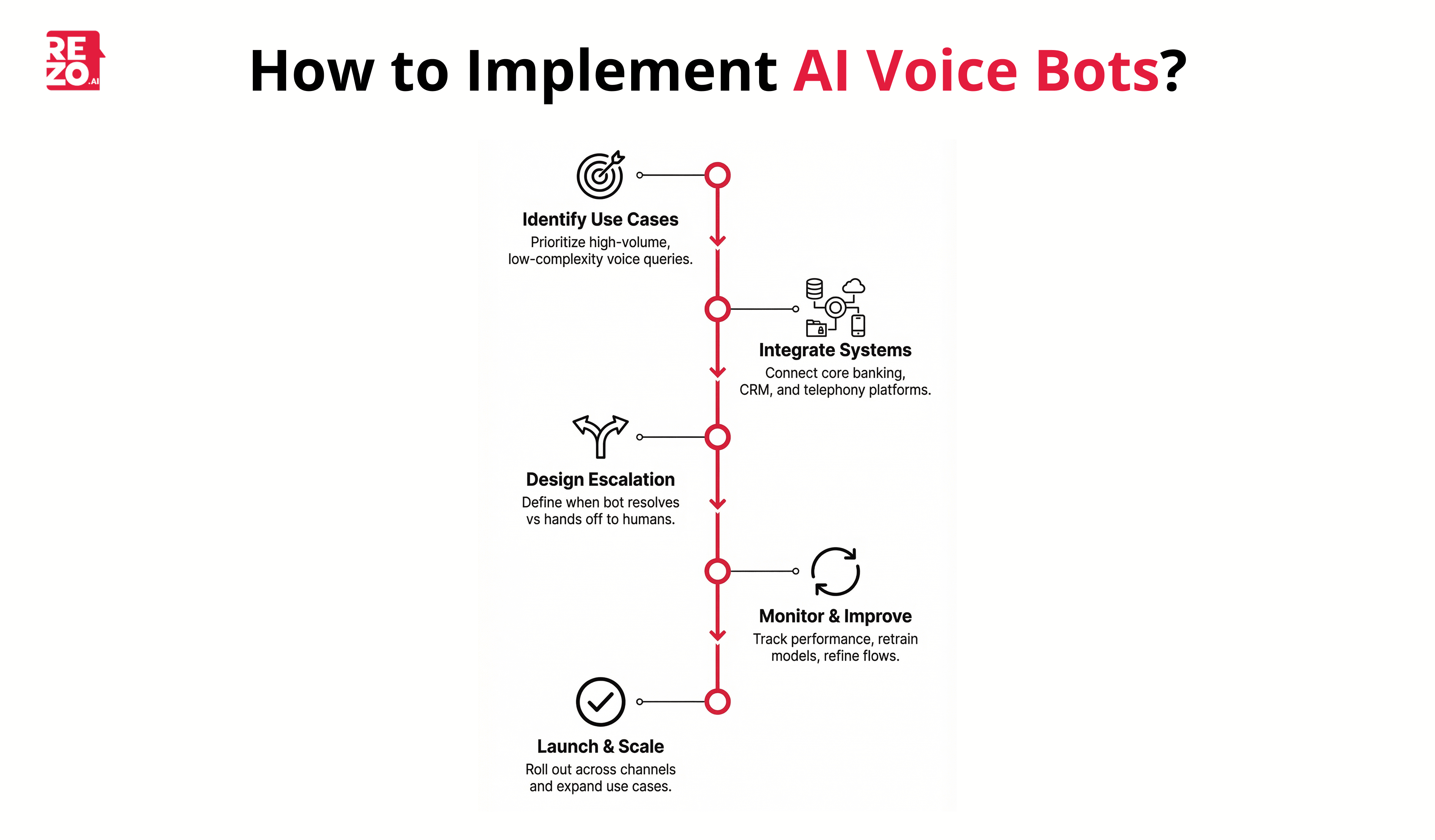 Start with high-volume, routine use cases. Balance inquiries, transaction lookups, and payment reminders are ideal starting points because they are frequent, low-risk and customer intent is well defined. Early wins build organizational confidence and generate data for improving the system.
