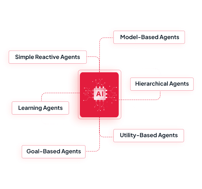 There are a number of AI agents available based on their degree of intelligence and capabilities. Five major types of intelligent agent in AI are: Simple Reactive agents, Model-based agents, Learning agents, Utility-based agents, and Goal-based agents.
